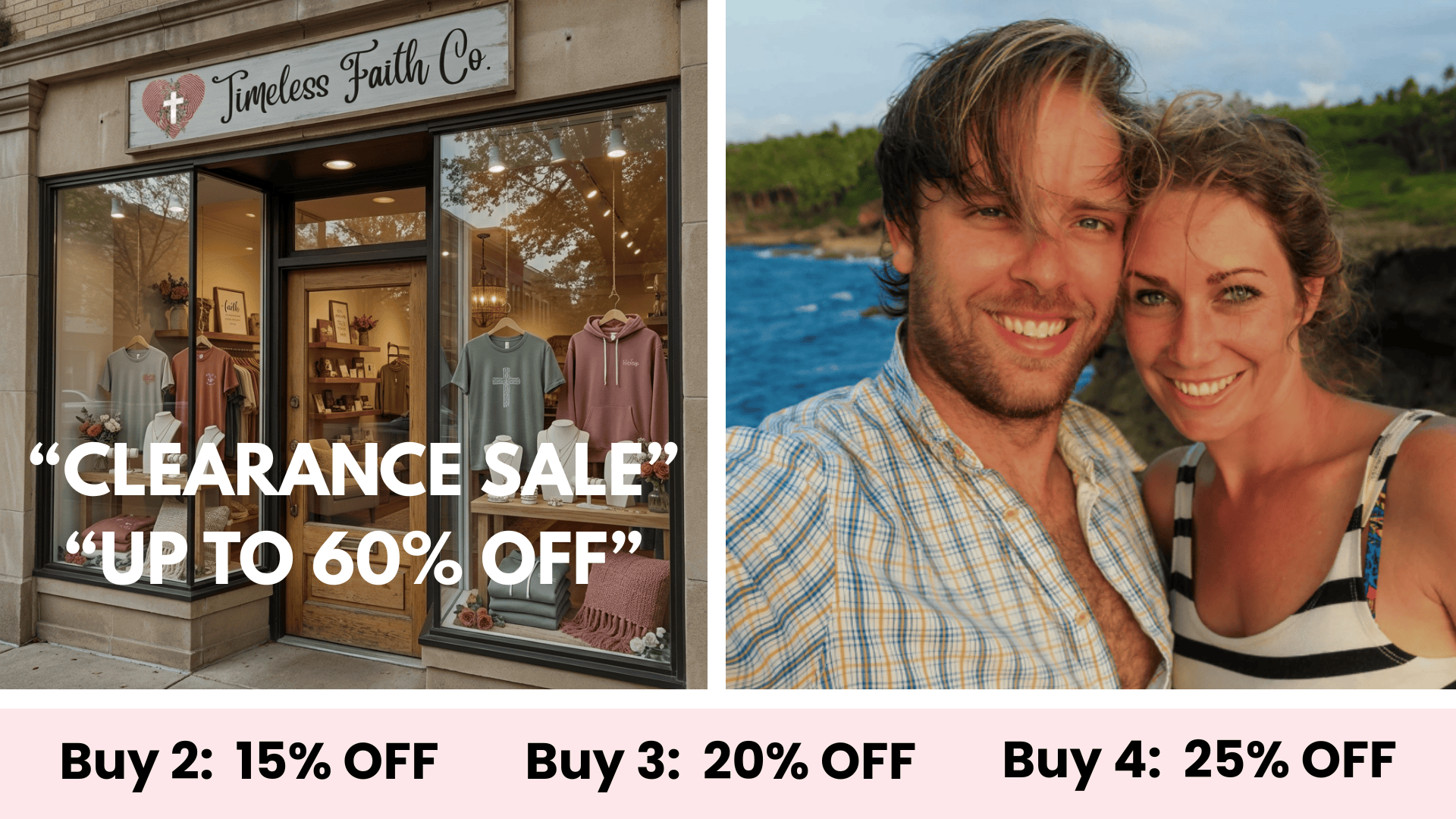 Timeless Faith Co. was founded by Daniel and Sarah, a husband and wife whose lives were deeply transformed when their relationship with Jesus became personal.